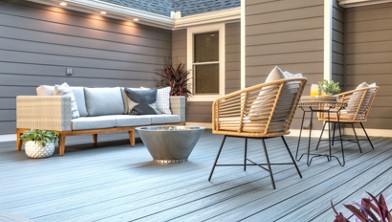 Presentada en nuestra guía Cómo renovar una terraza de madera con terrazas compuestas Trex Transcend®, esta terraza de bricolaje en planta baja aporta un estilo contemporáneo a este hogar georgiano. Desplázate para ver este impresionante espacio sureño desde todos los ángulos.
